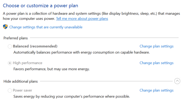 High performance Power Plan GUID: 8C5E7FDA-E8BF-4A96-9A85-A6E23A8C635C